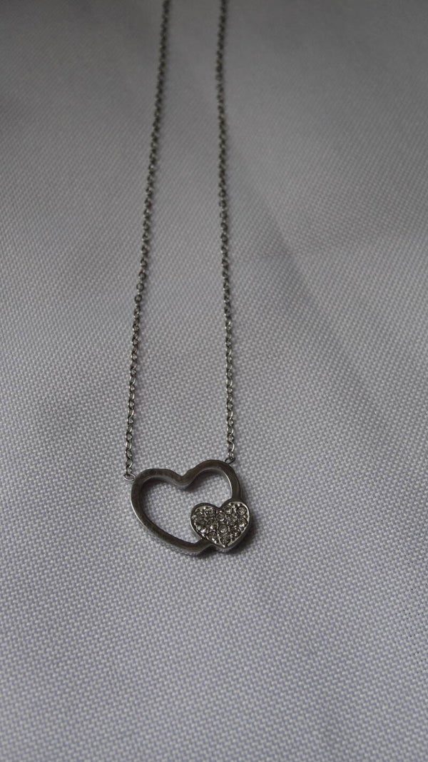 - Un collier avec un Double Coeur Argenté et l'autre avec des strasses. Longueur 25cm