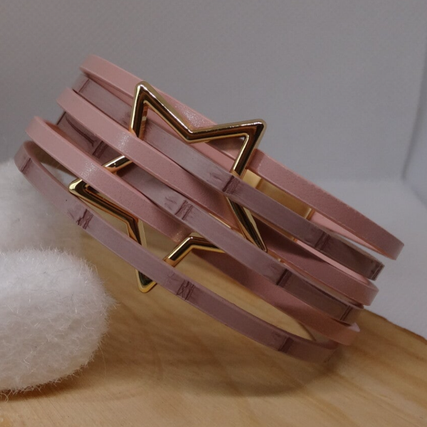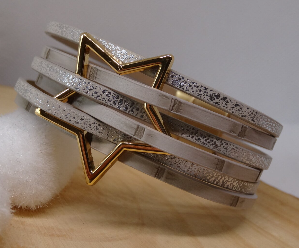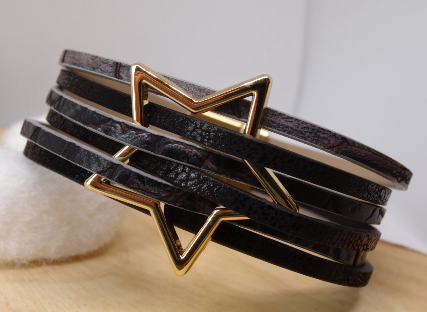 Les trésors de Rubis vous propose ce Bracelet en cuir Synthétique, avec une étoile en Acier inoxydable.