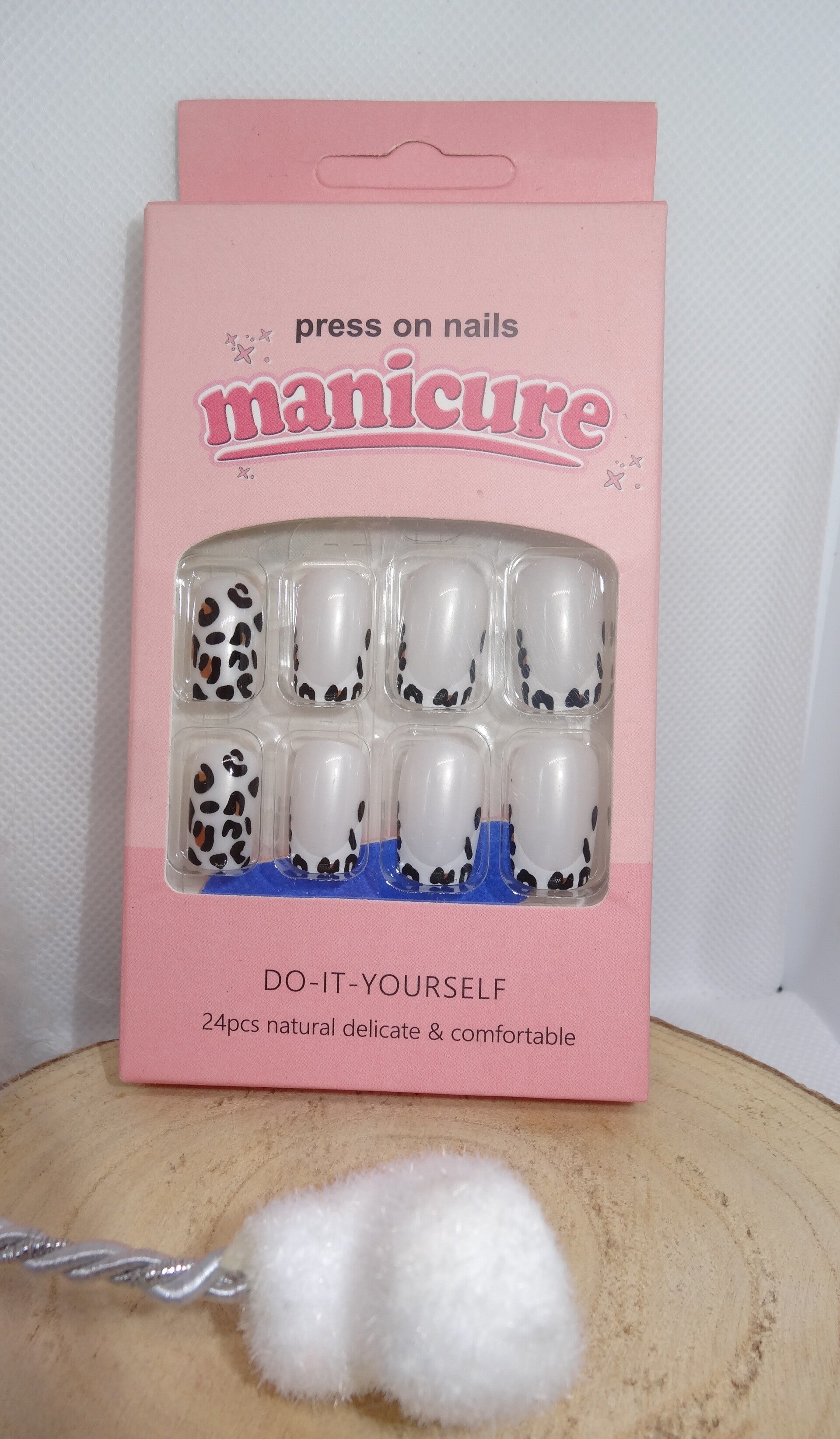 24 faux ongles imprimés léopard. Facile à utilisé.