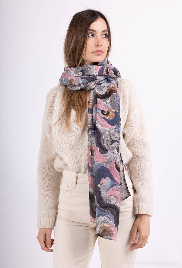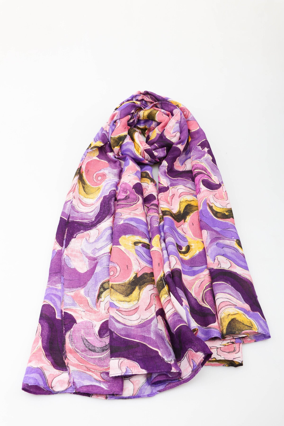 Echarpe Imprimé Fantaisie Violet avec Dorure