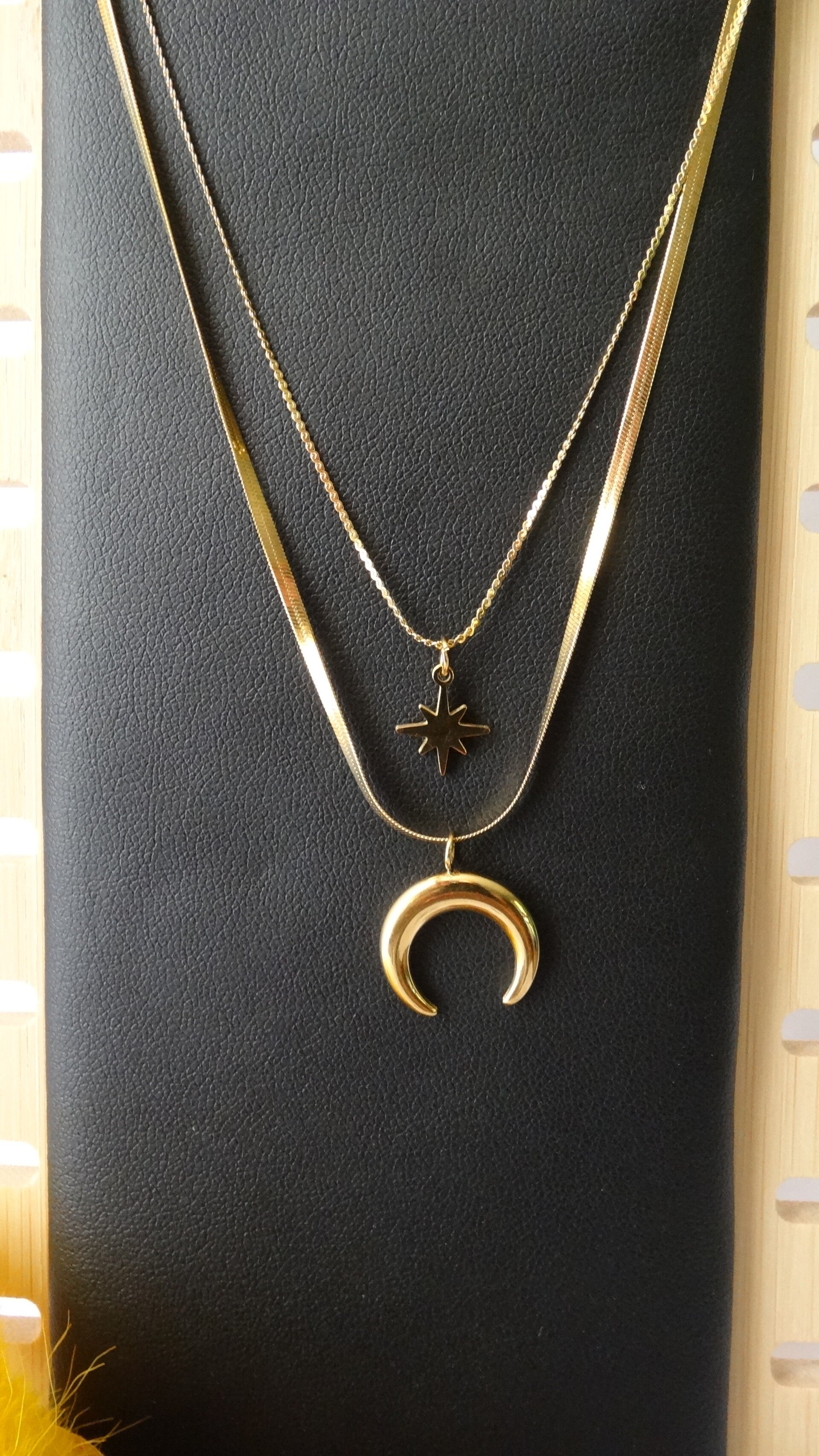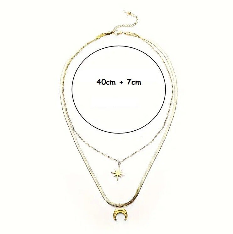 Collier Double avec Pendentif Lune et Etoile Doré