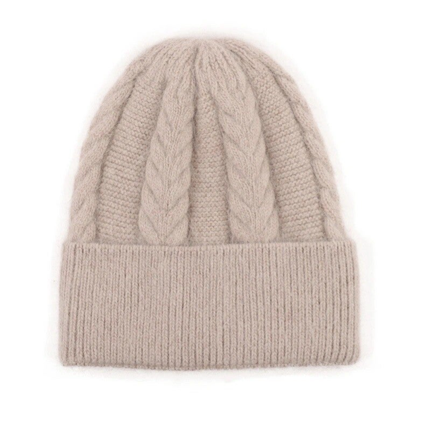 Les Trésors de Rubis vous propose ce Bonnet tricoté torsadé. Revers côtelé. Doux. Confortable. Chaude.