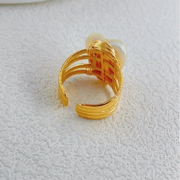 Les Trésors de Rubis vous propose cette bague en acier inoxydable, avec un coeur en nacre blanc et un coeur doré.