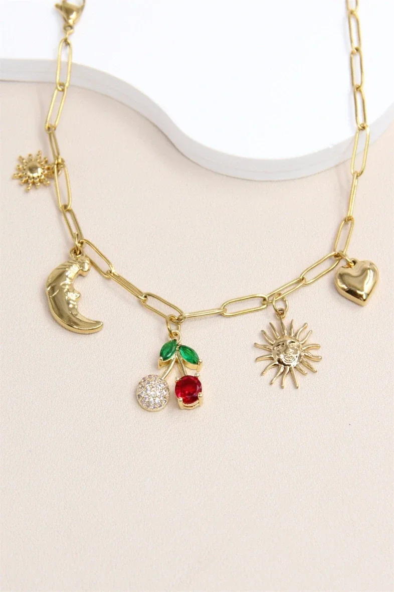 Bracelet Breloque Cerise, Lune, Soleil et Etincelle