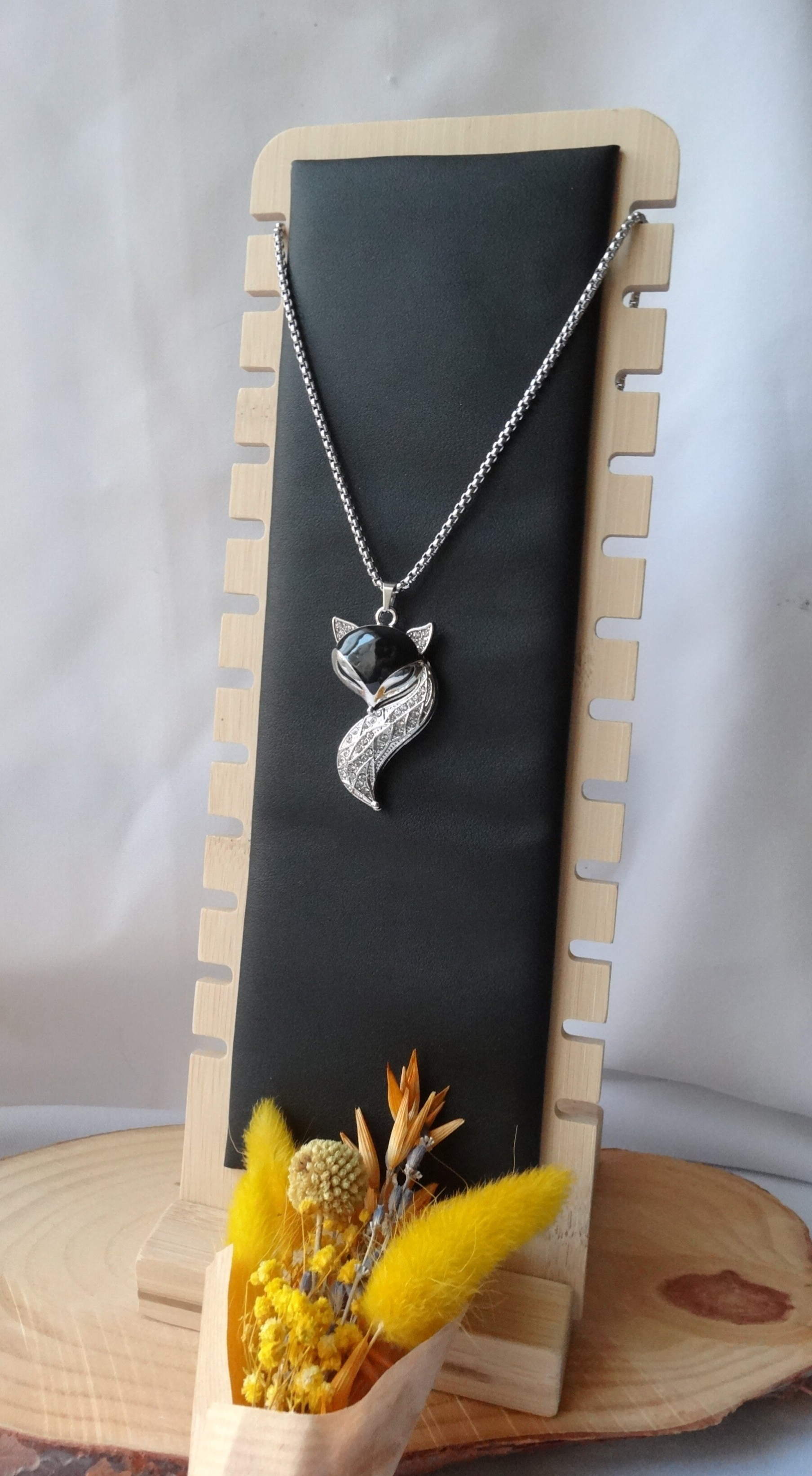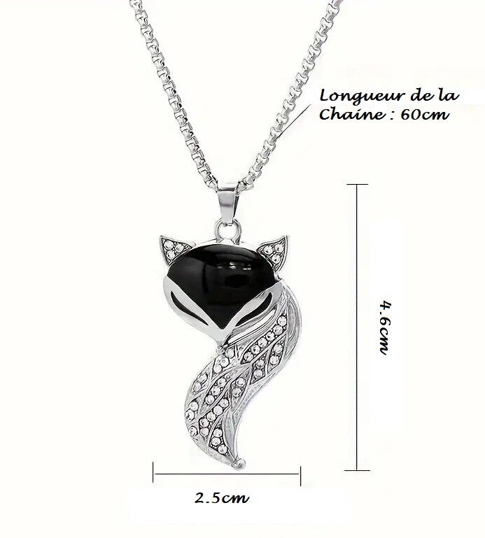 Ce Jolie collier en acier inoxydable avec pendentif renard vous ai proposé en noir ou blanc.
