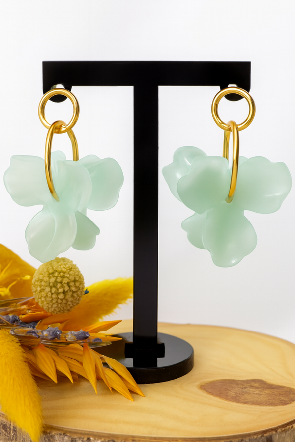Les Trésors de Rubis vous propse c'est Boucles d'Oreilles en Acier Inoxydable ornées d'une double fleurs en résine.