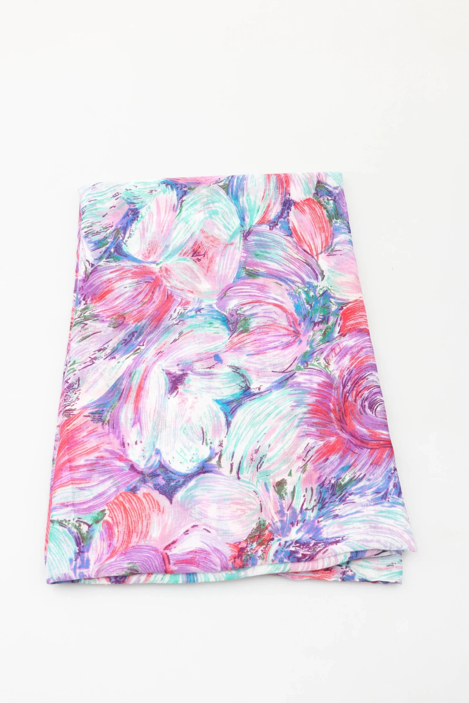 Les trésors de Rubis vous propose ce charmant foulard à motifs floraux aux couleurs éclatantes.