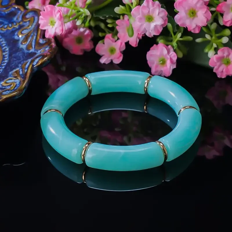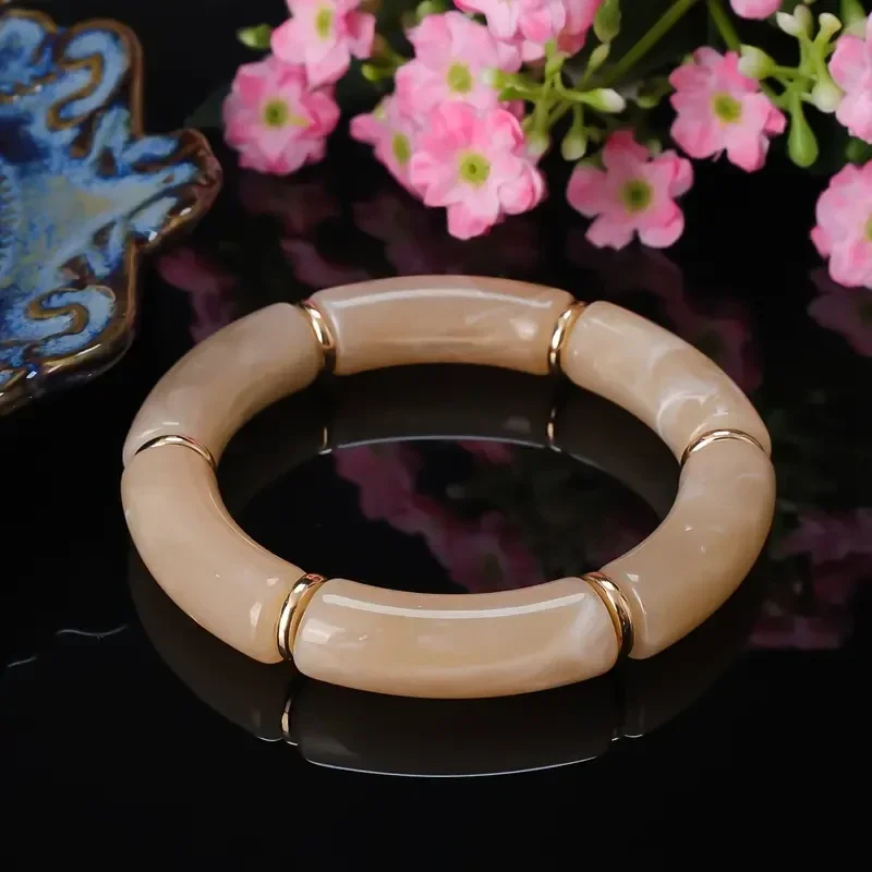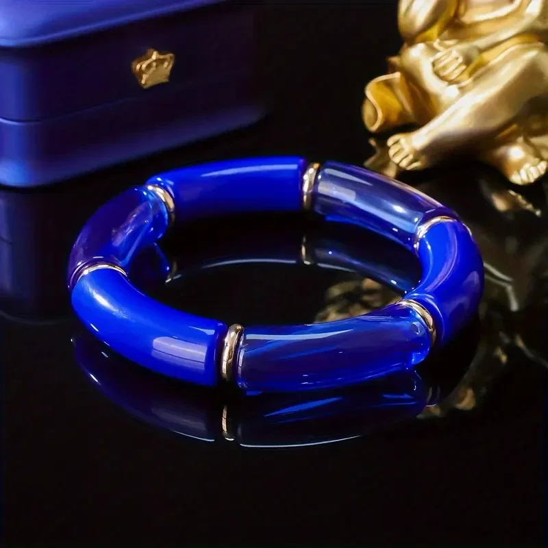 Les Trésors de Rubis vous propose c'est Bracelet en résine coloré avec perle d'espacement doré.