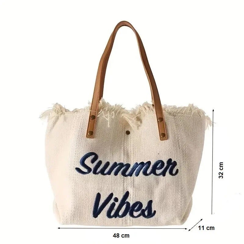 Sac cabas porté épaule avec inscription Summer Vibes " Ambiance d'été " ( Différentes Colories )