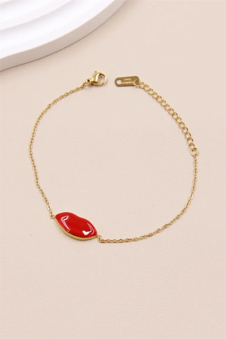 Les trésors de Rubis vous propose ce bracelet doré avec bouche rouge en acier inoxydable.