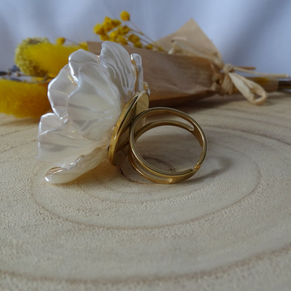 Les Trésors de Rubis vous propose ce collier en acier inoxydable doré, mettant en avant une fleur en résine blanche embellie d'or.