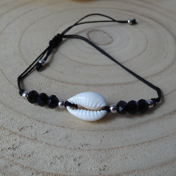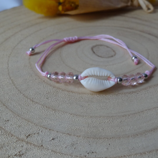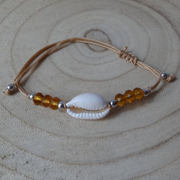 Les Trésors de Rubis vous propose c'est Bracelet réglable avec coquillage et perles de divers couleurs.