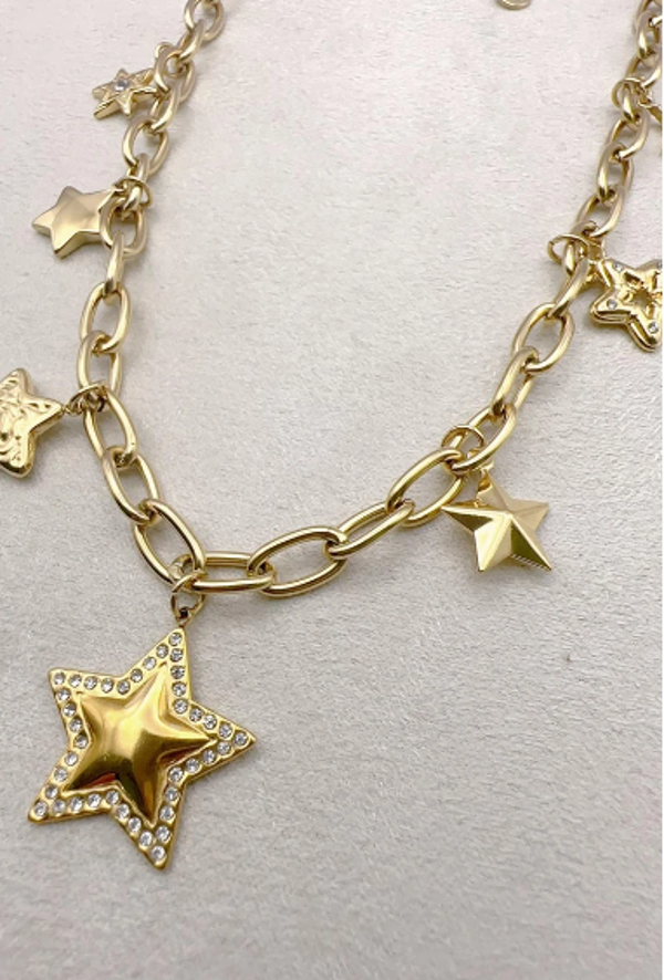 Les Trésors de Rubis vous propose ce collier avec c'est breloques en Forme d'Etoiles en acier inoxydable.