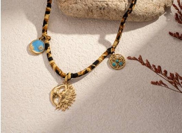 Ce collier léopard est orné de breloques dorées et d’un sublime pendentif Soleil & Lune, symbole d’équilibre et d’harmonie. Confectionné en acier inoxydable, il allie mystère céleste et allure sauvage. Un bijou unique pour sublimer vos tenues avec une touche spirituelle et solaire.