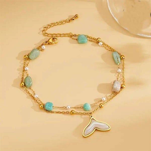 Cette Jolie Chaine de Cheville avec des Perles et une queu de poisson embellira votre cheville.