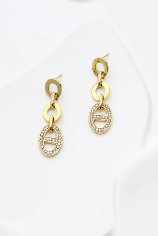 Élégantes et modernes, ces boucles d’oreilles pendantes en acier inoxydable doré se distinguent par leurs maillons raffinés et leur pendentif ovale orné de strass. L’alliance parfaite entre chic et tendance, pour sublimer vos tenues du quotidien comme vos soirées.