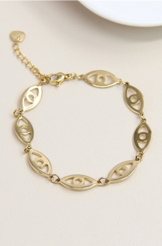 Bracelet œil couleur argent ou doré en acier inoxydable.